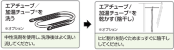 マスクやホースに水分が残っていると、カビの原因になります。なるべく水気をふき取って清潔に保ってください。